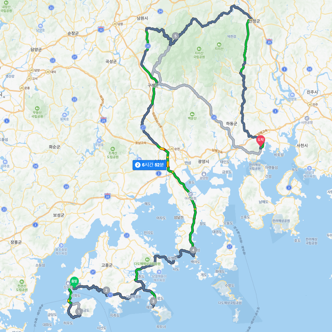 5일차: 지리산 -> 남해군 -> 통영 (약 180km)
